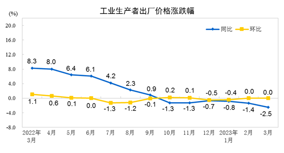 3月份全國工業(yè)生產(chǎn)者出廠價格(PPI)同比下降2.5%,環(huán)比持平,而且是從去年的10月份就開始轉(zhuǎn)跌了,到今年3月份跌幅進(jìn)一步擴(kuò)大。PPI下跌,也意味著市場供應(yīng)量大于需求量,導(dǎo)致競爭激烈,產(chǎn)品降價拋售。