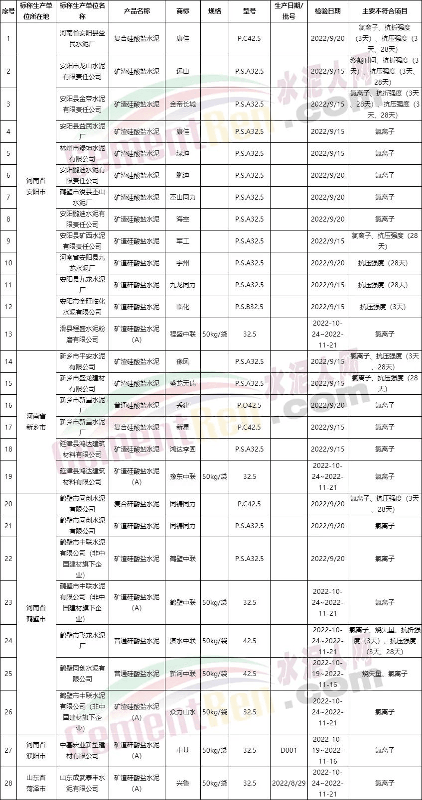 水泥質量萬里行組委會此前通報的2022年水泥質量抽檢結果顯示,菏澤及豫北區(qū)域共抽檢43批次不合格水泥,其中28批次不合格,合格的產品僅15批次,不合格率達到了驚人的65.1%。