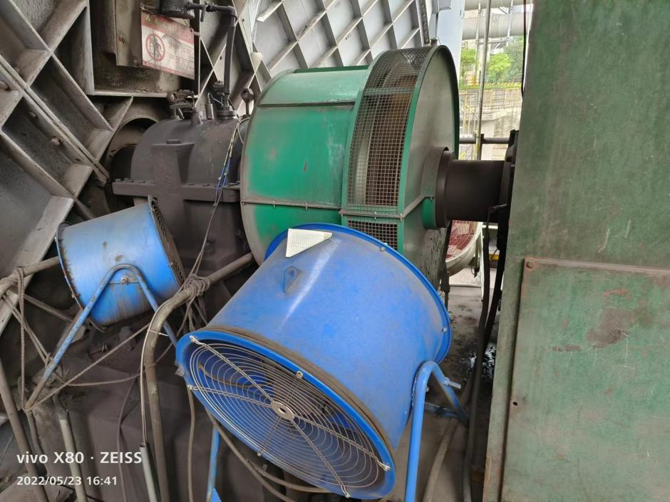 新余集團(tuán)某公司2500kW渦流永磁耦合器使用現(xiàn)場(chǎng),因其渦流永磁耦合器發(fā)熱問(wèn)題,還需配備5臺(tái)大功率風(fēng)機(jī)吹風(fēng)散熱!