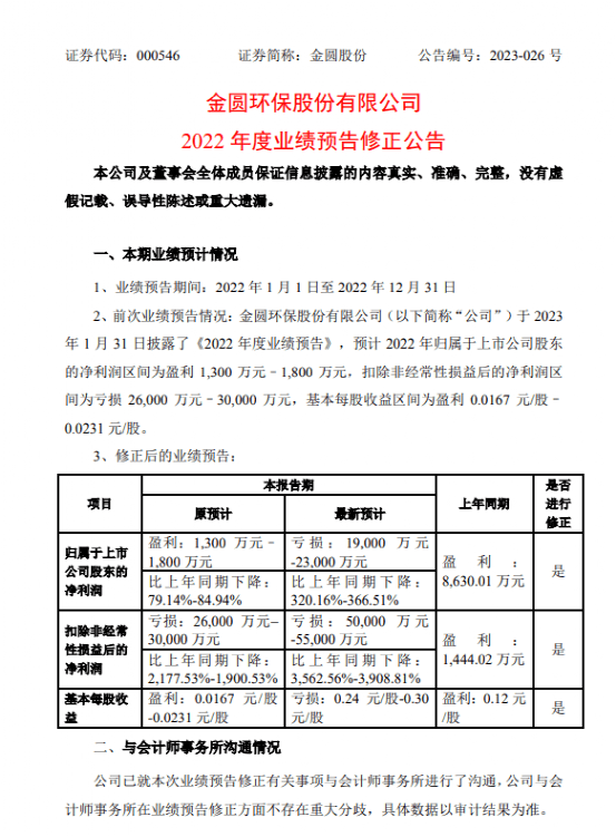 2023年4月16日晚間,金圓股份業(yè)績爆雷,預(yù)計(jì)2022年業(yè)績由盈利轉(zhuǎn)為虧損,預(yù)計(jì)虧損1.9億元至2.3億元,同比下降320.16%至366.51%。扣非后虧損5億至5.5億元,同比下降3562.56%至3908.81%。