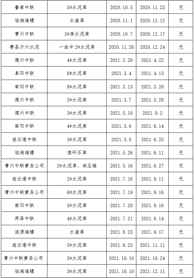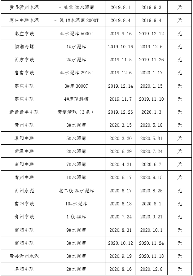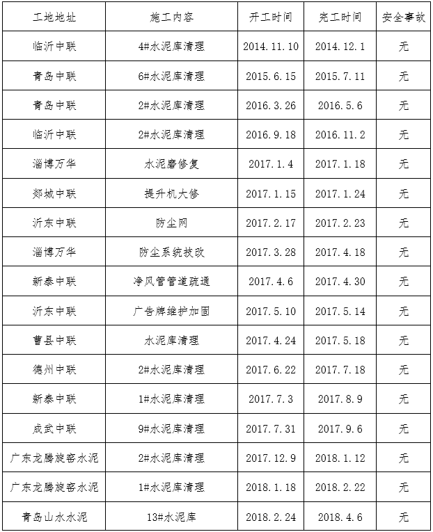 鑫盛利水泥倉智能機(jī)械清理有限公司業(yè)績(jī)表