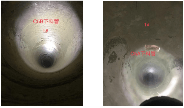第一次停窯期間,對(duì) C5 下料管進(jìn)行檢查