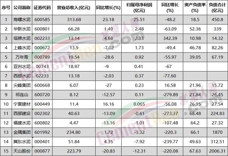 山水水泥、華潤水泥、亞洲水泥一季度業(yè)績下挫