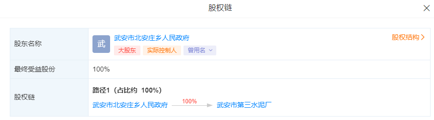 據(jù)查詢:武安市第三水泥廠,法定代表人張海平,工商注冊地址位于河北省邯鄲市武安市北安莊鄉(xiāng)同會(huì)村。股權(quán)鏈顯示,企業(yè)為武安市北安莊鄉(xiāng)人民政府100%控股企業(yè)。