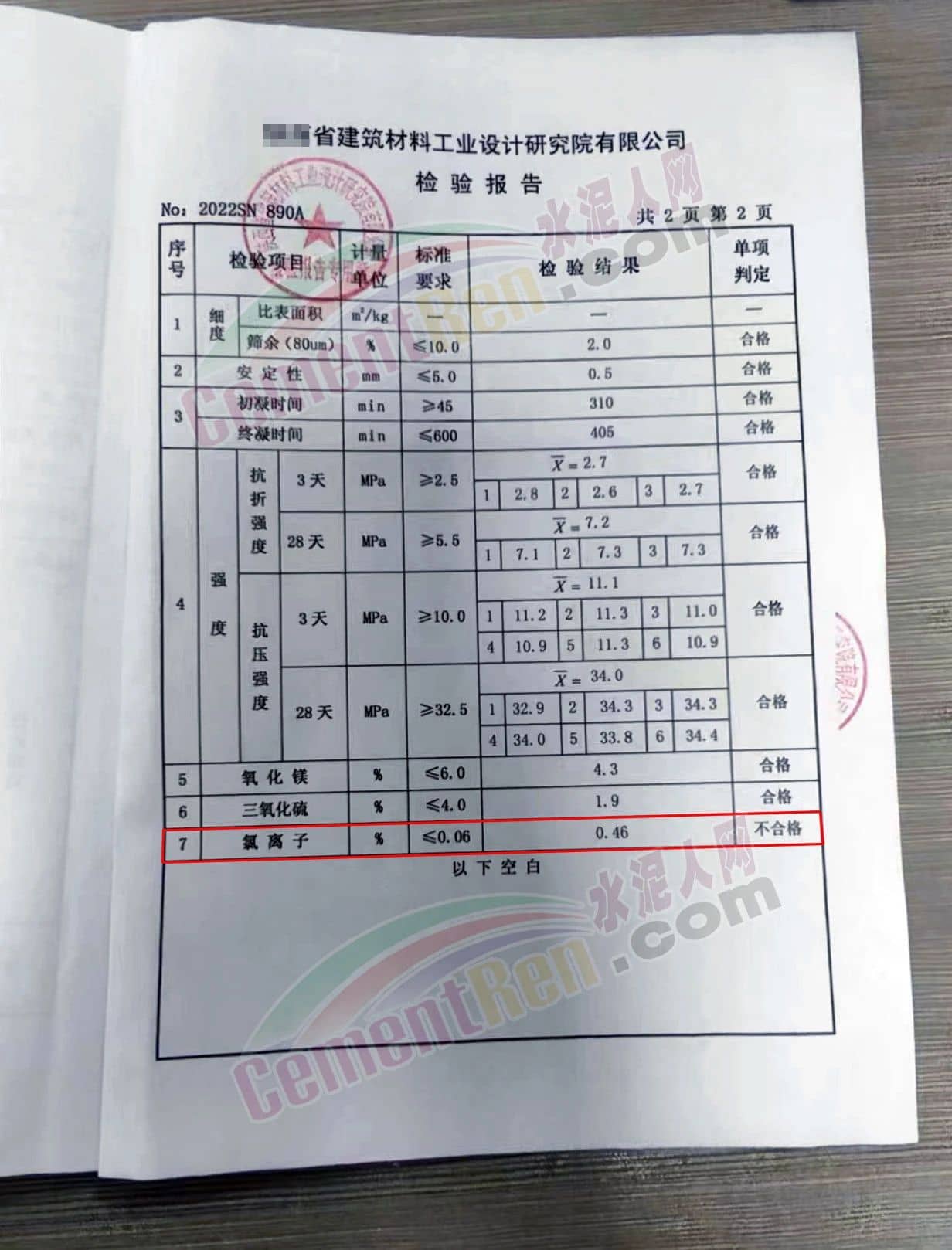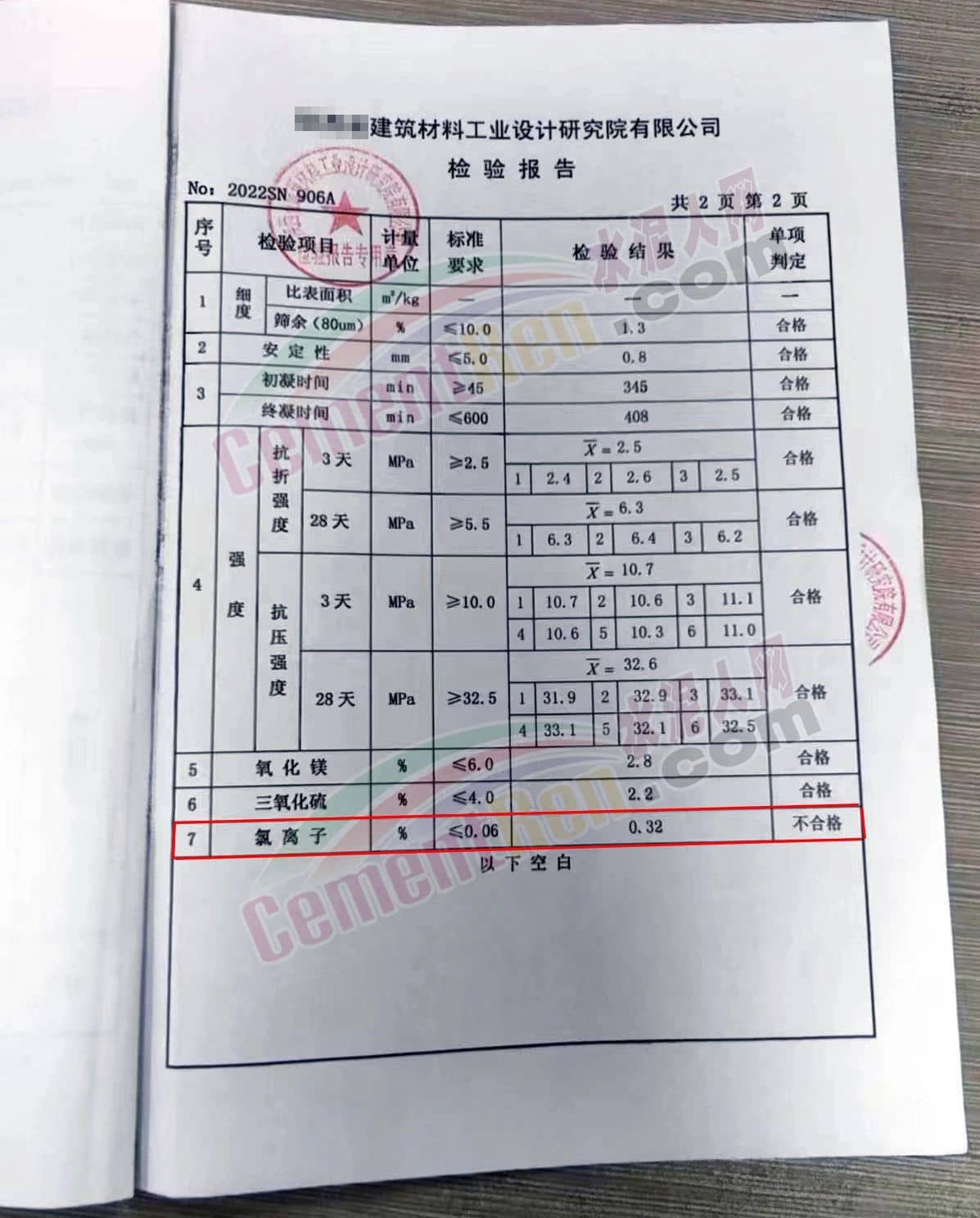 “眾力山水、鶴壁中聯(lián)”兩批次水泥“氯離子”不符合標(biāo)準(zhǔn)要求