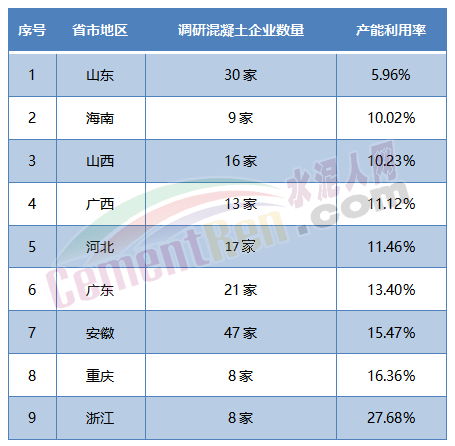 水泥市場的低迷,從下游各地混凝土企業(yè)產(chǎn)能利用率情況也可見其一斑。