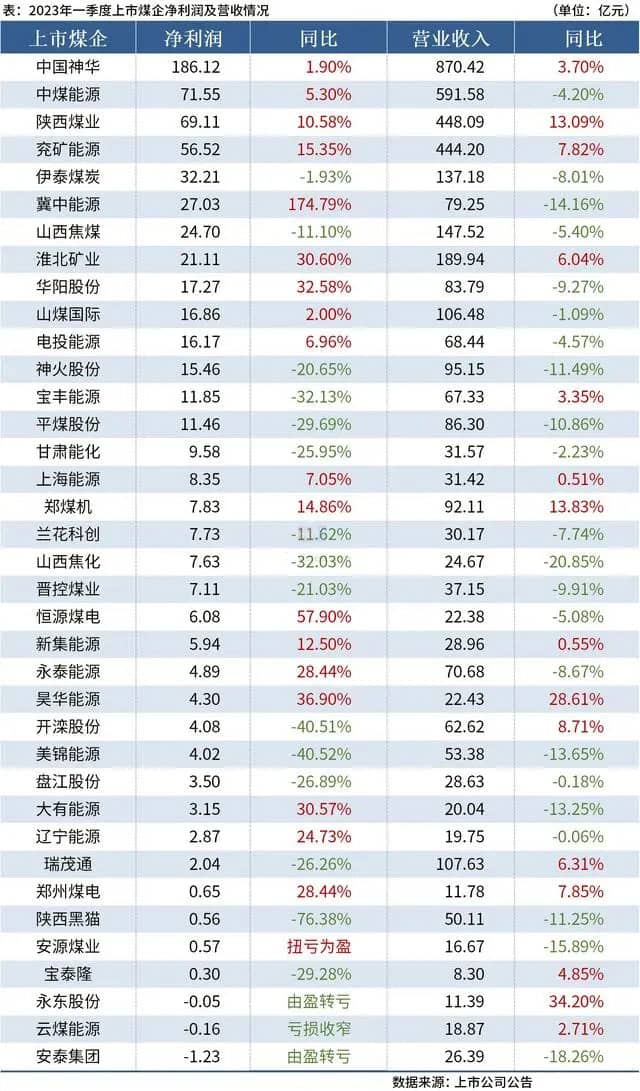 水泥行業(yè)的上游煤炭企業(yè),2023年第一季度90%以上盈利