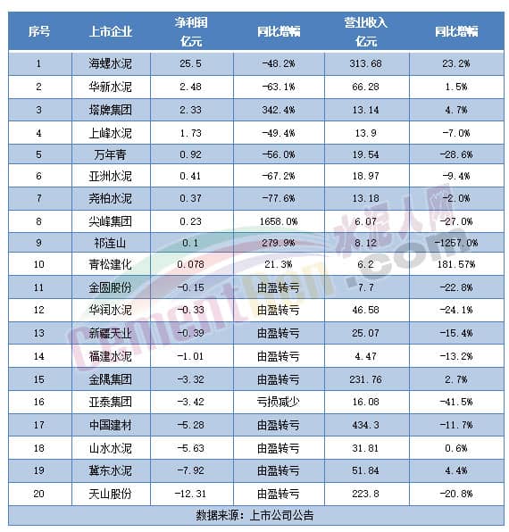 從各大上市企業(yè)一季度財報可見,行業(yè)3000多家水泥廠絕大多數(shù)量價齊跌,營收和利潤不是虧損就是下滑。上市的20家龍頭企業(yè)高達10家虧損,占比達50%,“水泥一哥”海螺水泥一季利潤同比暴跌48.2%。