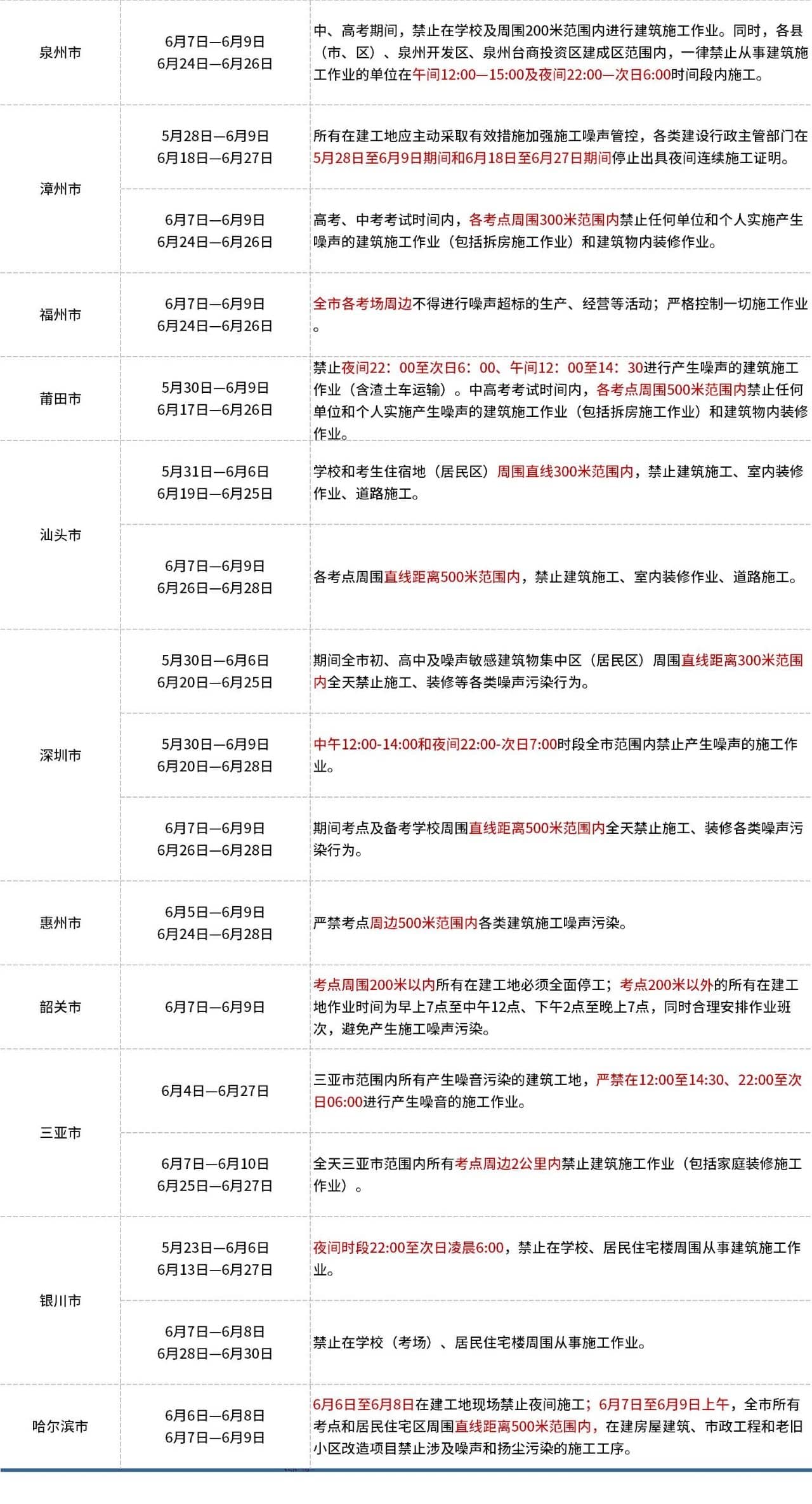 據(jù)市場(chǎng)反饋,為給廣大中、高考學(xué)生創(chuàng)造一個(gè)良好的復(fù)習(xí)迎考和考試環(huán)境,各地紛紛發(fā)出通知對(duì)所有建筑工地加強(qiáng)監(jiān)管工作。截至6月7日,共有57個(gè)城市發(fā)布了建筑工地停工最新政策。