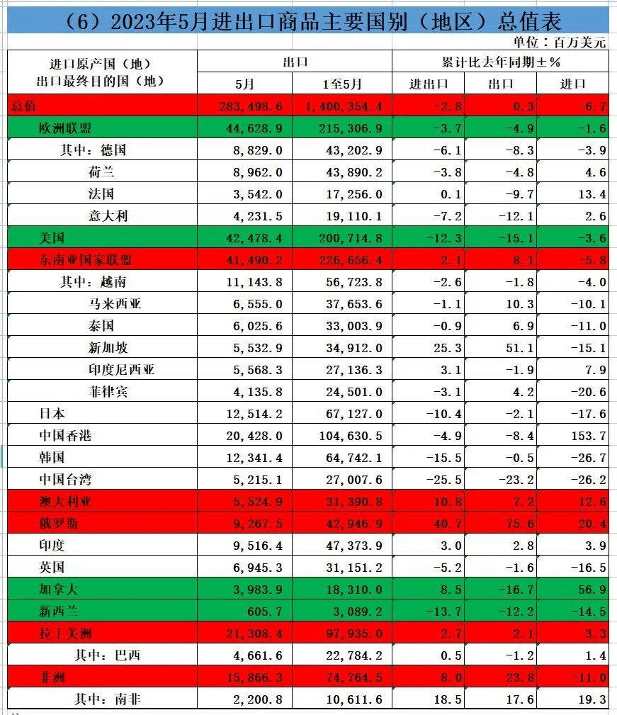并不樂觀的數(shù)據(jù)背后,是全球經(jīng)濟(jì)出現(xiàn)了衰退,導(dǎo)致需求越來越少,歐美等地區(qū)對(duì)于我國(guó)的訂單更是幾近腰斬。1-5月份的累計(jì)情況,對(duì)美國(guó)出口同比下滑15.1%,對(duì)歐洲同比下滑4.9%,對(duì)加拿大、新西蘭都是同樣的問題。