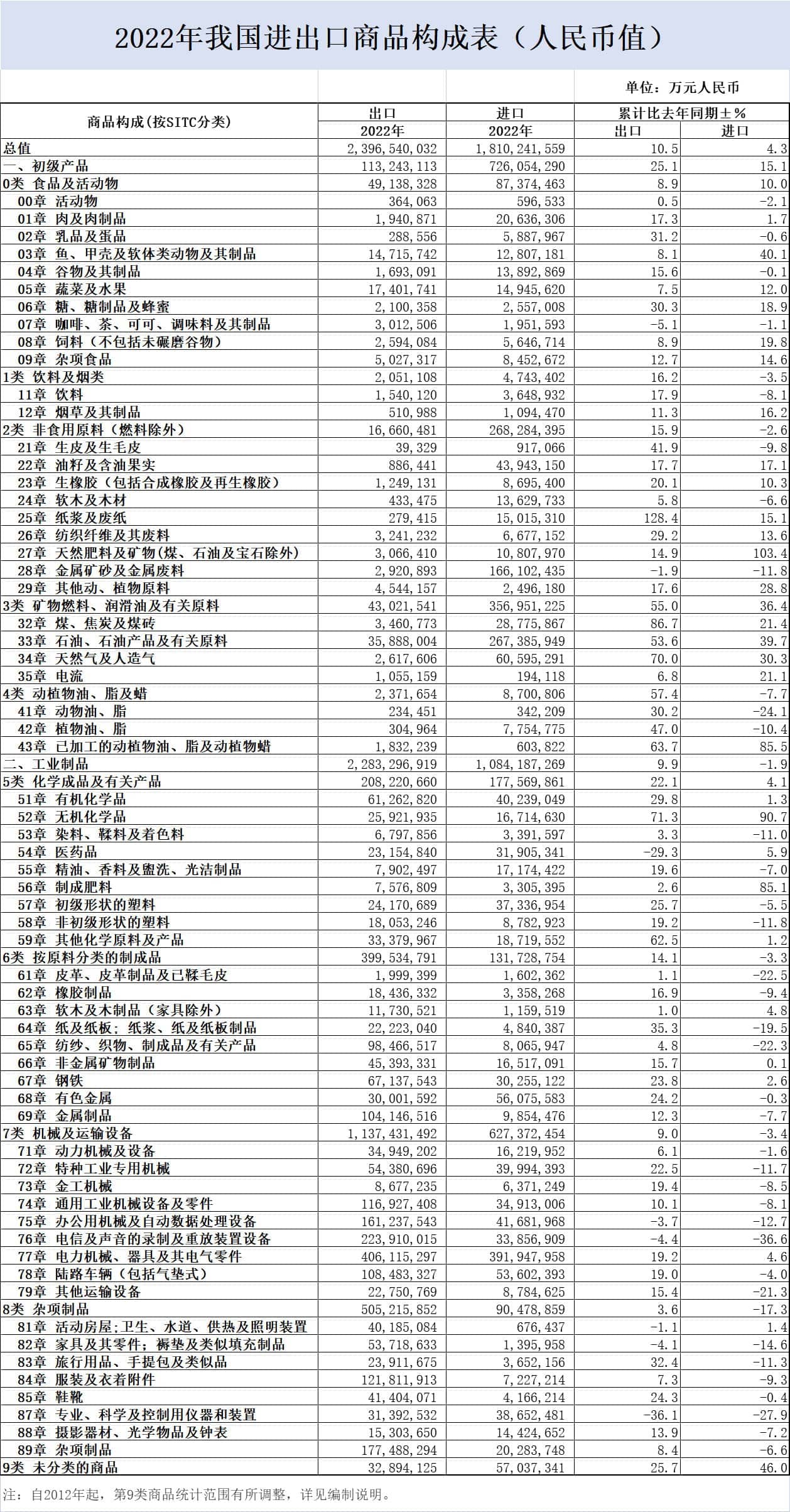 外貿(mào)市場(chǎng)回暖并不如預(yù)期,我國(guó)出口產(chǎn)品也受到波及。2022年我國(guó)出口商品最多的是“工業(yè)制品”。其中,機(jī)械及運(yùn)輸設(shè)備出口22.8萬億元、雜項(xiàng)制品出口5.1萬億元、按原料分類的制成品出口4萬億元、化學(xué)成品及有關(guān)產(chǎn)品出口2.1萬億元、食品及活動(dòng)物出庫(kù)4914億元。