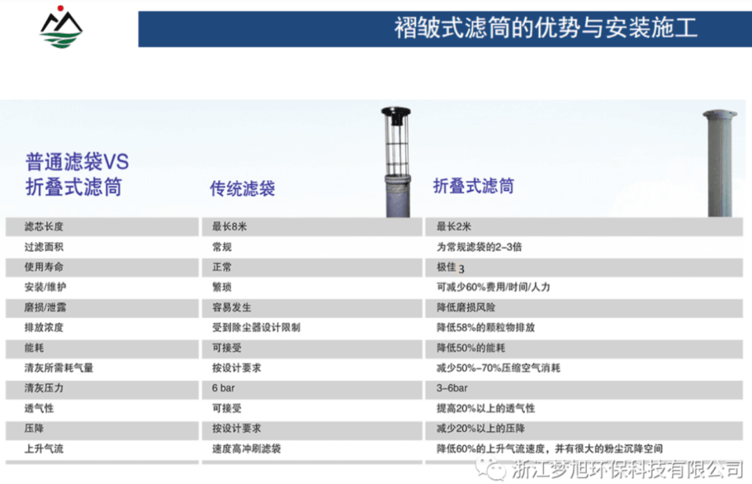經(jīng)多家水泥企業(yè)使用證明,與傳統(tǒng)的普通濾袋相比,夢(mèng)旭環(huán)保的褶皺式濾筒具有以下優(yōu)勢(shì):