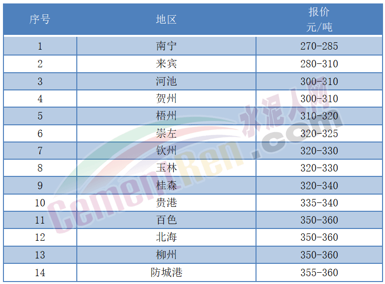 據(jù)市場(chǎng)反饋,6月中旬前后,扶綏海螺包裝水泥下調(diào)30元/噸,主要輻射崇左、南寧、防城港、北海等區(qū)域;北流海螺、興業(yè)海螺等通知袋裝水泥下調(diào)40元/噸,散裝水泥下調(diào)30元/噸,主要輻射玉林、桂林等區(qū)域。目前南寧市場(chǎng)P.O42.5散裝水泥報(bào)價(jià)在270-285元/噸左右。