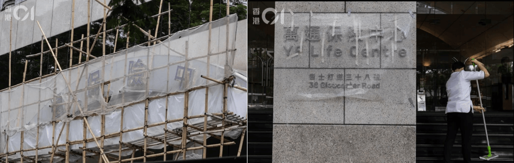 據香港媒體6月21日報道,香港恒大中心的牌子已被換下,貼上了新名牌“萬通保險中心”,但名牌上還覆蓋有膠膜和腳手架。