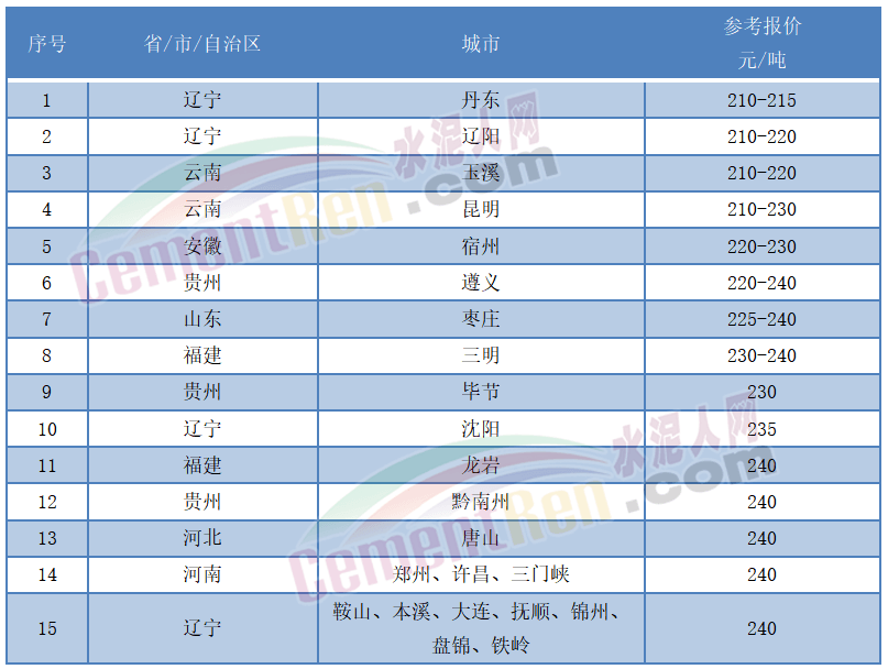 備注:上述數(shù)據(jù)來源水泥人網(wǎng)信息中心人工采集,僅供參考,如與實際成交價格不符,請以實際成交為準。