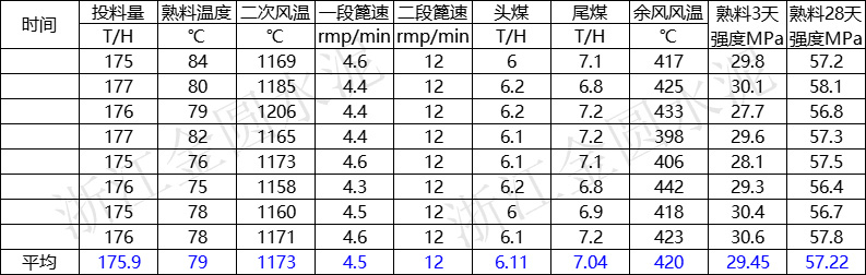 二次風(fēng)溫:平均值≥1150,中控顯示數(shù)據(jù)(產(chǎn)量:2800-3000t/d);