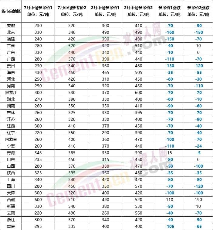 對比今年2月中旬以來各區(qū)域水泥價格漲跌情況可見北京、福建、廣西、貴州、內(nèi)蒙古、寧夏、天津、重慶、河南、山東、四川等10多個省市地區(qū)水泥價格出現(xiàn)100元/噸以上的下跌。
