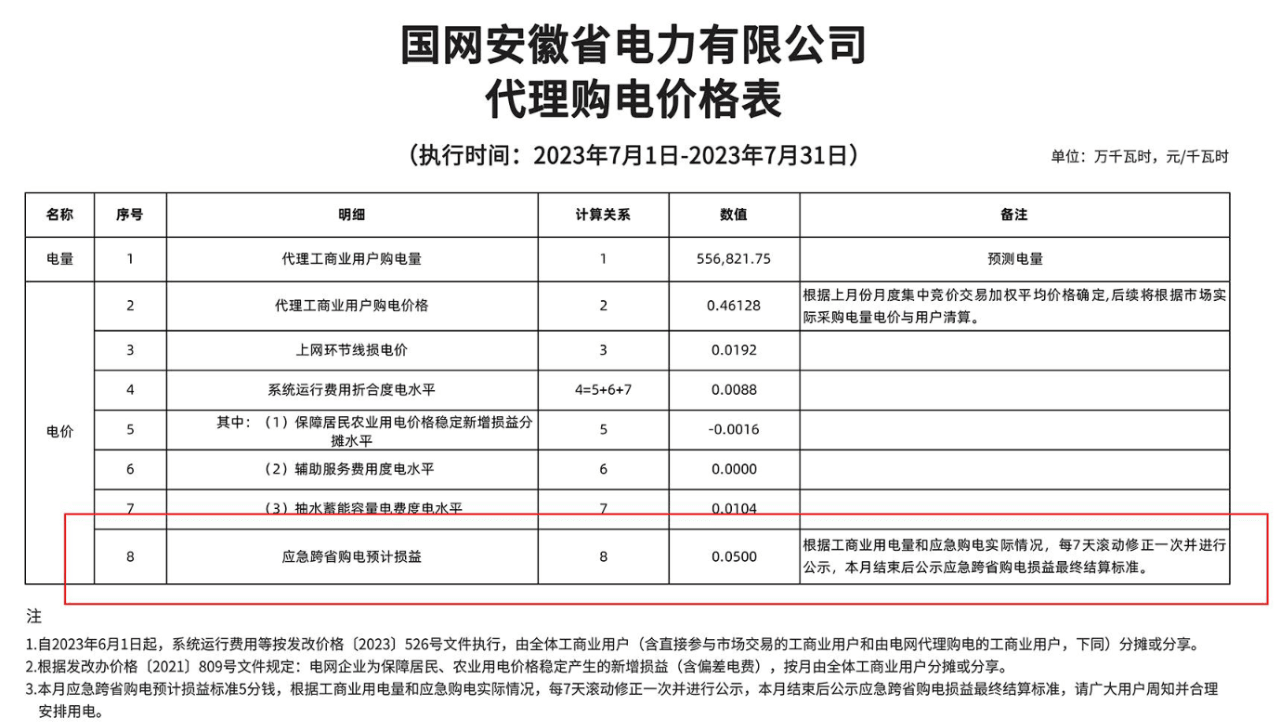 在迎峰度夏(冬)期間,因應(yīng)急跨省購(gòu)電產(chǎn)生的損益,原則上按照“月預(yù)告、周修正”方式發(fā)布。在月末3日前公布的代理購(gòu)電工商業(yè)用戶電價(jià)表中公示次月應(yīng)急跨省購(gòu)電預(yù)計(jì)損益標(biāo)準(zhǔn),次月內(nèi)根據(jù)工商業(yè)用電量和應(yīng)急跨省購(gòu)電實(shí)際情況,每7天滾動(dòng)修正一次并進(jìn)行公示,次月結(jié)束后公示上月應(yīng)急跨省購(gòu)電損益最終結(jié)算標(biāo)準(zhǔn),將進(jìn)一步保障用戶知情權(quán)和用電需求。
