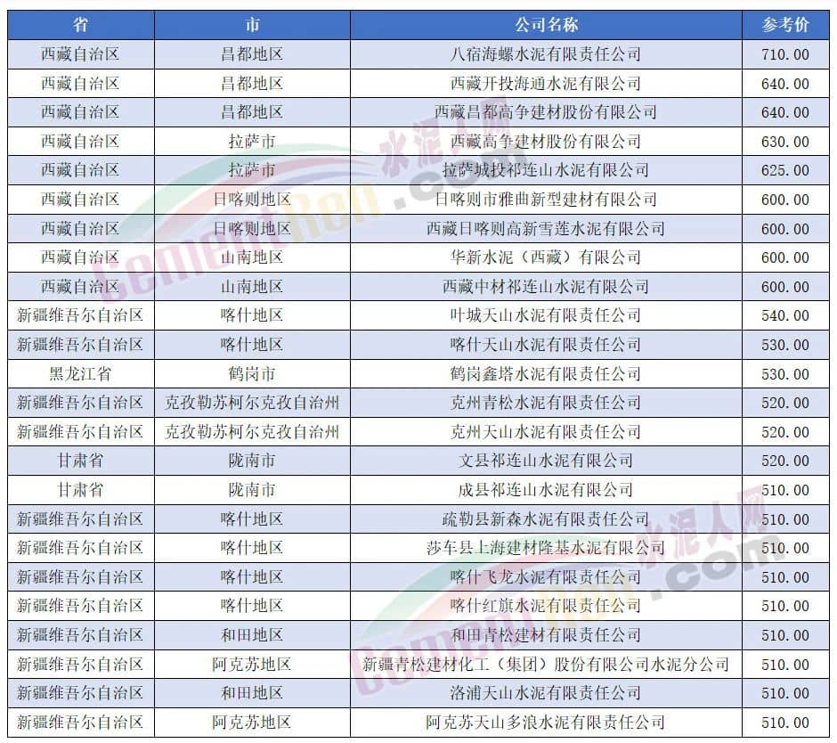 高原水泥報價710元/噸,鐵路拉動,供需相對平衡