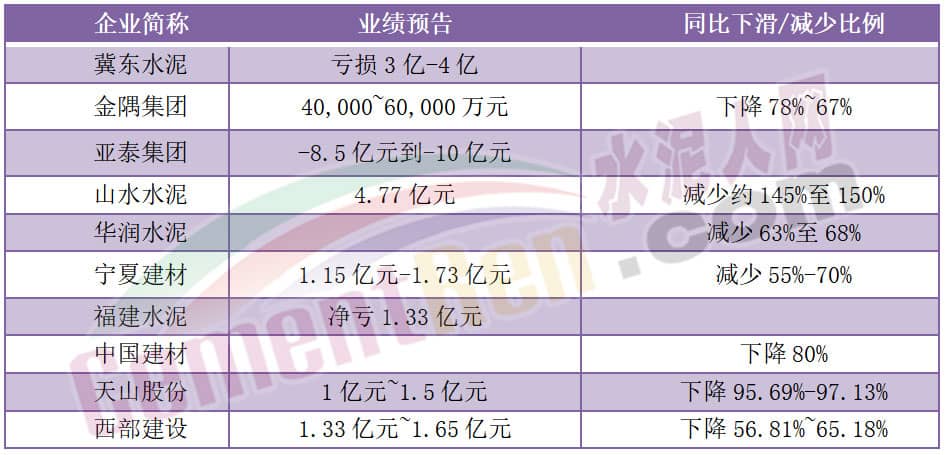 近來(lái)多家上市公司發(fā)布了上半年業(yè)績(jī)預(yù)告,除塔牌水泥預(yù)告上半年實(shí)現(xiàn)凈利潤(rùn)4.54億元-5.07億元,同比增長(zhǎng)160%-190%外,絕大多數(shù)企業(yè)業(yè)績(jī)出現(xiàn)50%以上的下滑。