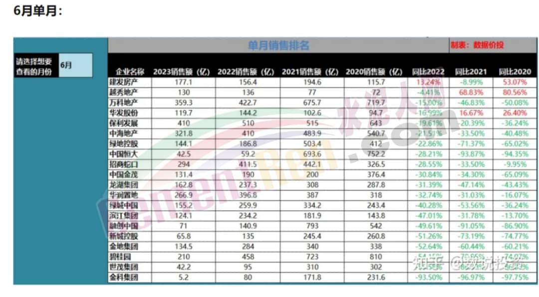 公開數(shù)據(jù)顯示,今年6月份碧桂園、濱江、新城控股、中鐵建、遠(yuǎn)洋等房企的銷售額均同比出現(xiàn)了腰斬,另外招商、華潤(rùn)、金茂、龍湖、卓越等房企6月銷售額同比的跌幅也都在30%上下,萬科、保利、中海、綠地、華發(fā)等房企6月銷售額同比的跌幅也都在20%左右。6月房企實(shí)現(xiàn)銷售操盤金額5267.4億元,單月業(yè)績(jī)同比降低28.1%。