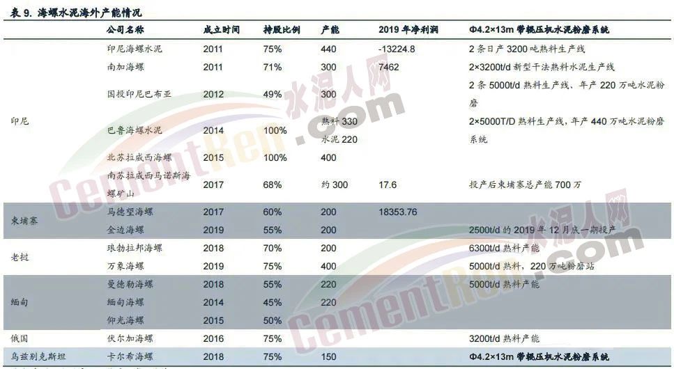 老撾的瑯勃拉邦和萬象海螺從17年投產(chǎn)以來每年都是虧損的,19年兩家公司合計(jì)虧損7000多萬;緬甸有3個(gè)公司——曼德勒、仰光和緬甸海螺,其中披露過的曼德勒17年賺了888元(不是萬元),18年賠了3371元,19年虧損5000萬;俄羅斯的伏爾加海螺17年開始投產(chǎn),當(dāng)年賠了4000萬,18年賠了400萬;19年賺了12萬。