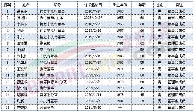海螺水泥副董事長王建超,監(jiān)事會主席吳小明年齡在59-60歲之間。