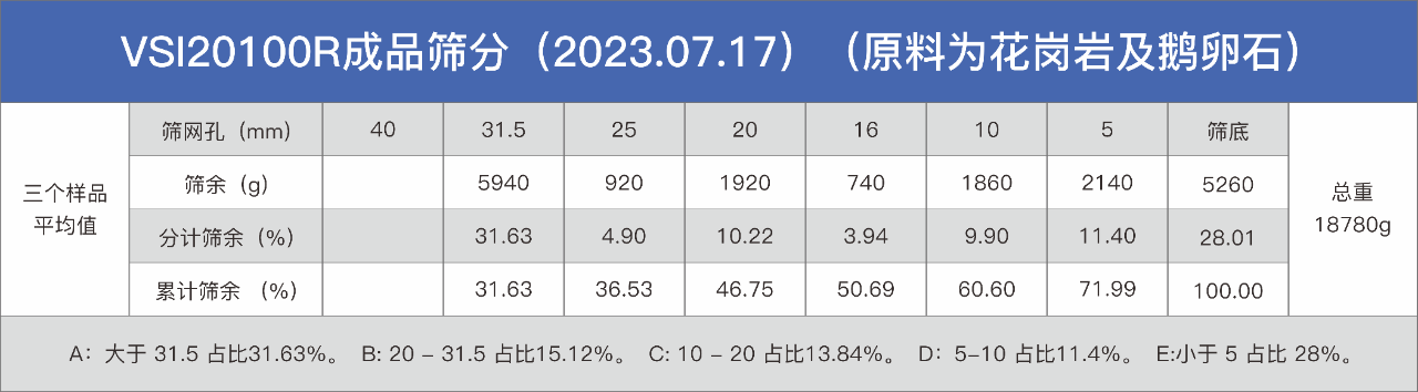 表:硬巖破碎成品的化驗(yàn)結(jié)果