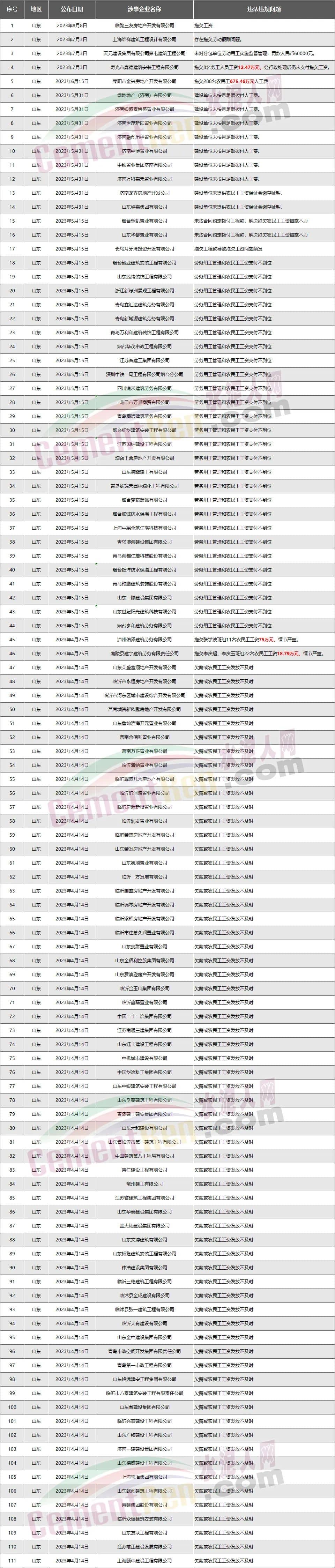 山東111家房企、建企欠薪被通報(bào)或處罰,涉及金額781.72萬元