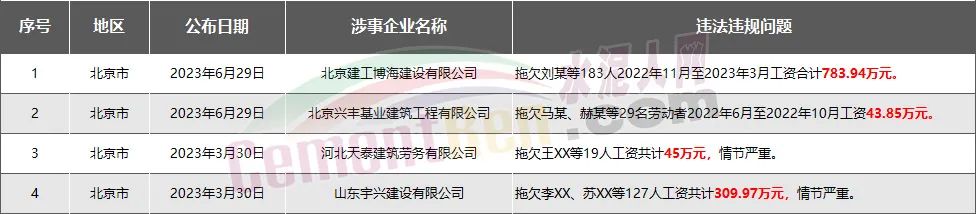 北京市4家房企、建企欠薪被通報(bào)或處罰,涉及金額1182.76萬元