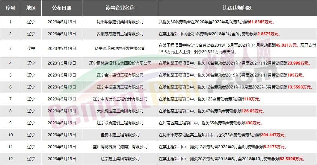 遼寧省12家房企、建企欠薪被通報(bào)或處罰,涉及金額1282萬元