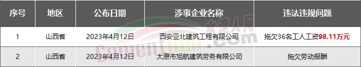 山西省2家房企、建企欠薪被通報(bào)或處罰,涉及金額98.11萬元