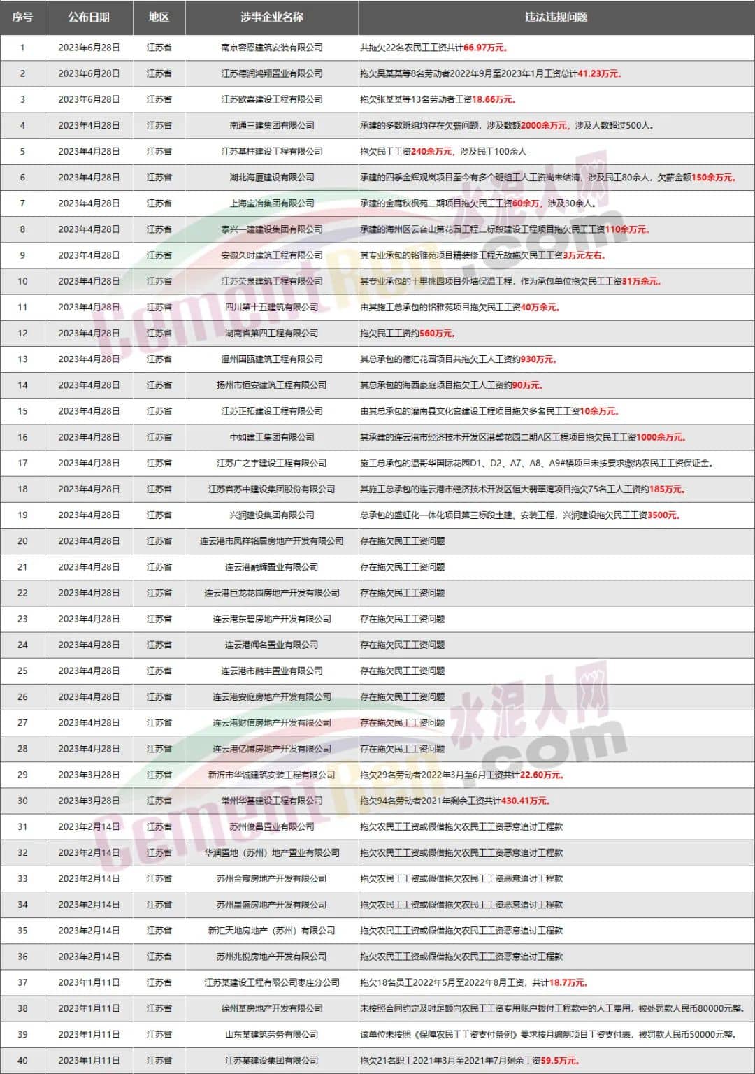 16家水泥企業(yè)欠薪超8348萬元