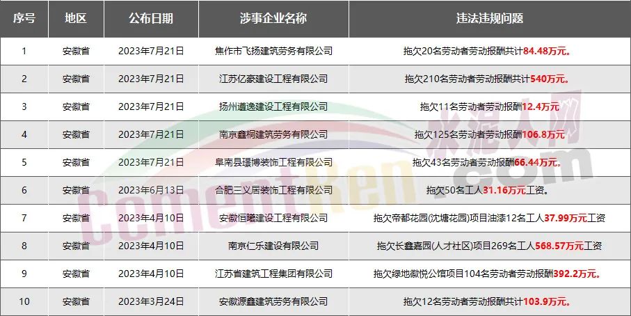 安徽省10家房企、建企欠薪被通報(bào)或處罰,涉及金額1944萬元