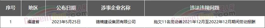 福建省1家房企、建企欠薪被通報(bào)