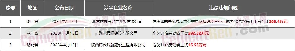 湖北省3家房企、建企欠薪被通報(bào)或處罰,涉及金額544.27萬元