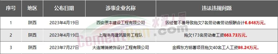 陜西省3家房企、建企欠薪被通報(bào)或處罰,涉及金額768.61萬元