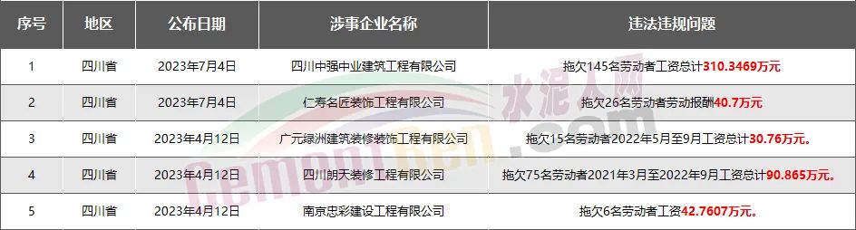 四川省5家房企、建企欠薪被通報(bào)或處罰,涉及金額515.42萬元