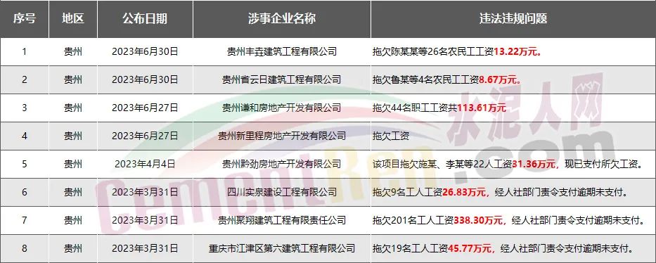 貴州省8家房企、建企欠薪被通報(bào)或處罰,涉及金額577.76萬元
