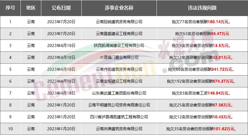 云南省10家房企、建企欠薪被通報(bào)或處罰,涉及金額1860.66萬元