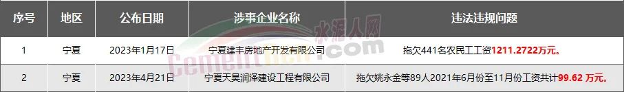 寧夏2家房企、建企欠薪被通報(bào)或處罰,涉及金額1310.89萬元