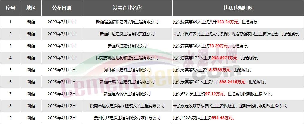 新疆9家房企、建企欠薪被通報(bào)或處罰,涉及金額2194萬元