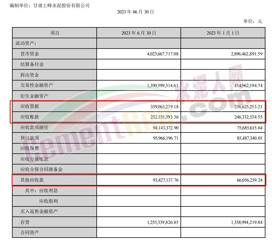 2023年上半年祁連山應(yīng)收賬款4.43億,其他應(yīng)收款384.2萬。
