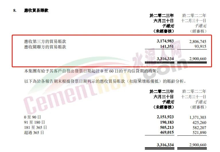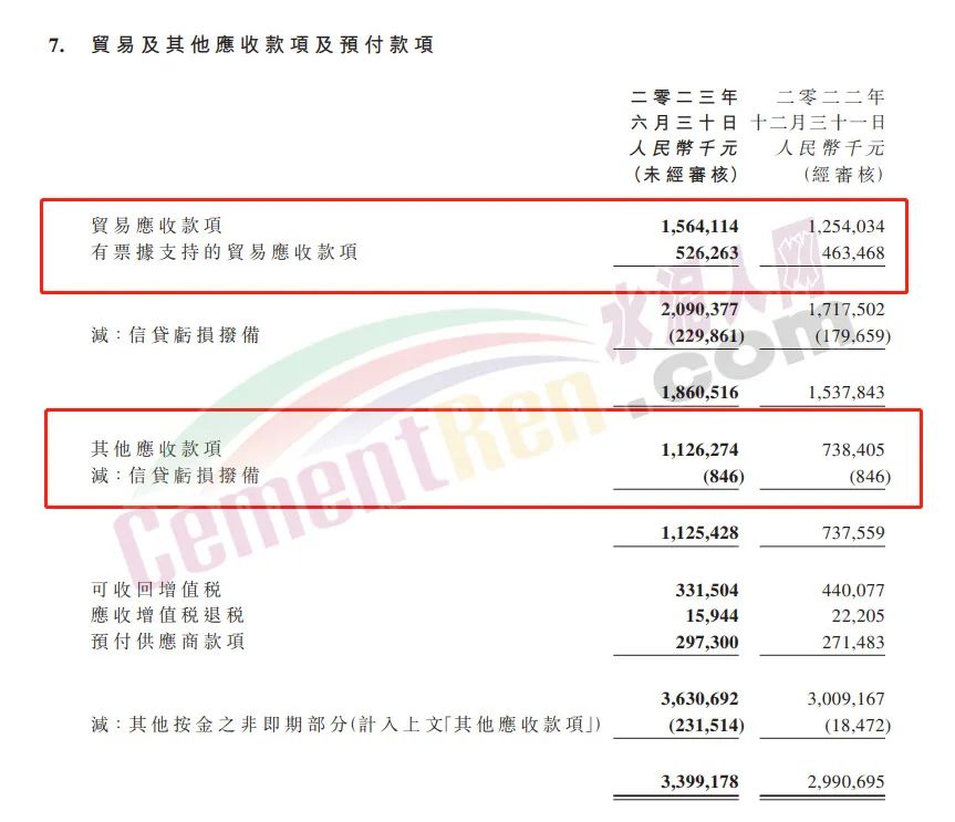 2023年上半年華潤(rùn)水泥應(yīng)收賬款33.16億。