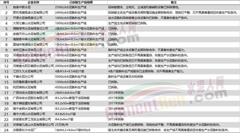 近日多個地區(qū)工信部門發(fā)布了水泥熟料生產(chǎn)線拆除退出的消息。據(jù)水泥人網(wǎng)不完全統(tǒng)計,今年以來已有30多條生產(chǎn)線關停退出,并完成關鍵設備拆除,退出產(chǎn)能合計超1000萬噸/年。