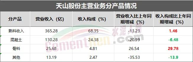今年上半年,華新水泥混凝土營業(yè)收入同比去年增加58.53%,營收占比同比去年增加42.51%。骨料營業(yè)收入同比去年增加69.08%,營收占比同比去年增加51.99%。水泥及商品熟料營收及收入占比同比去年均有所減少。