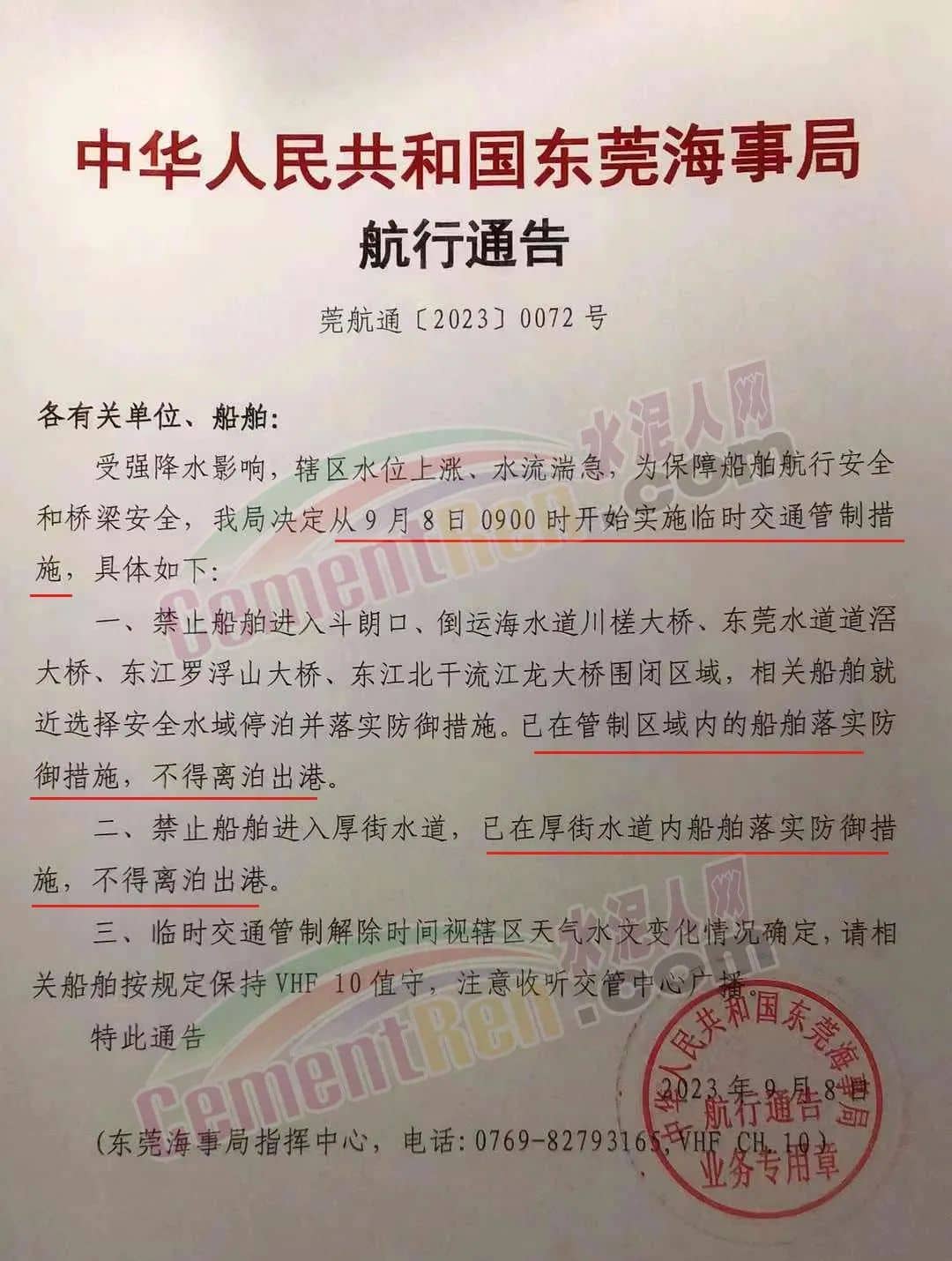 因暴雨、臺(tái)風(fēng)影響,華南多地大宗物流停限運(yùn),施工工地及攪拌站停工停產(chǎn),水泥發(fā)運(yùn)量近零。水運(yùn)物流方面,海事局發(fā)布臨時(shí)交通管制措施管制區(qū)內(nèi)船舶禁止進(jìn)入,已進(jìn)入船舶不得離泊出港。