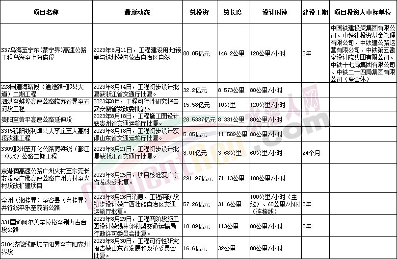 據(jù)水泥人網(wǎng)了解,9月份以來,包括國家發(fā)改委、省級(jí)發(fā)改委及交通廳、自然資源部以及交通運(yùn)輸部等多個(gè)部門審批通過了14個(gè)重大交通項(xiàng)目,其中包括公路項(xiàng)目10個(gè),鐵路項(xiàng)目2個(gè),城軌交通項(xiàng)目和機(jī)場項(xiàng)目各1個(gè),工程總投資約1830億元。