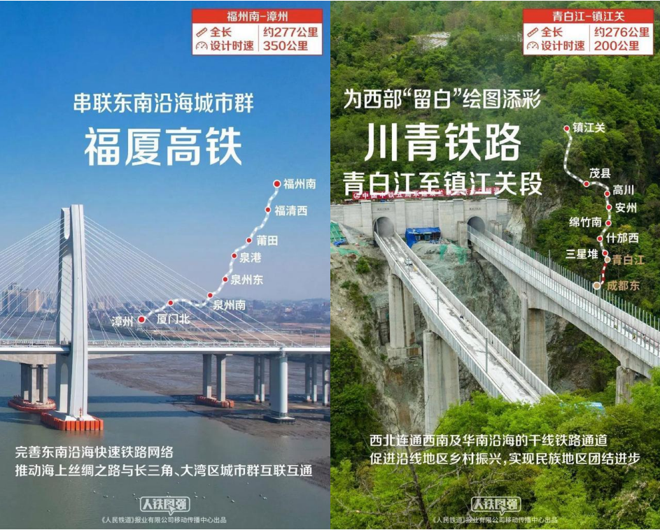 成宜高鐵、滇藏鐵路麗江至香格里拉段、敘永至畢節(jié)鐵路、龍龍鐵路龍巖至武平段等多個(gè)項(xiàng)目建設(shè)也已接近尾聲。