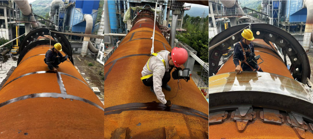 圖:回轉(zhuǎn)窯筒體裂紋搶修中